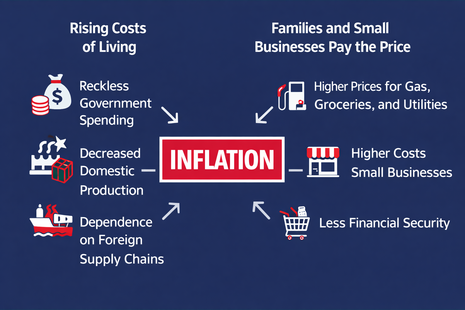 Inflation is not an accident. It is the result of poor decisions—reckless spending, dependence on foreign supply chains, and policies that weaken American production while raising everyday costs for working families.